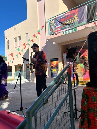 La escuela primaria Miami Springs Elementary cobró vida recientemente con los sonidos llenos de alma del jazz, cuando estudiantes, maestros y personal se reunieron para celebrar el Mes de la Historia Afroamericana de una manera verdaderamente especial. Como parte de la iniciativa comunitaria del Jazzonian – Museo de Jazz de Florida, el Maestro Bobby Ramírez trajo su saxofón y un electrizante repertorio de swing y bebop para cautivar a la joven audiencia, sumergiéndolos en el rico legado de la música jazz.