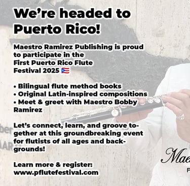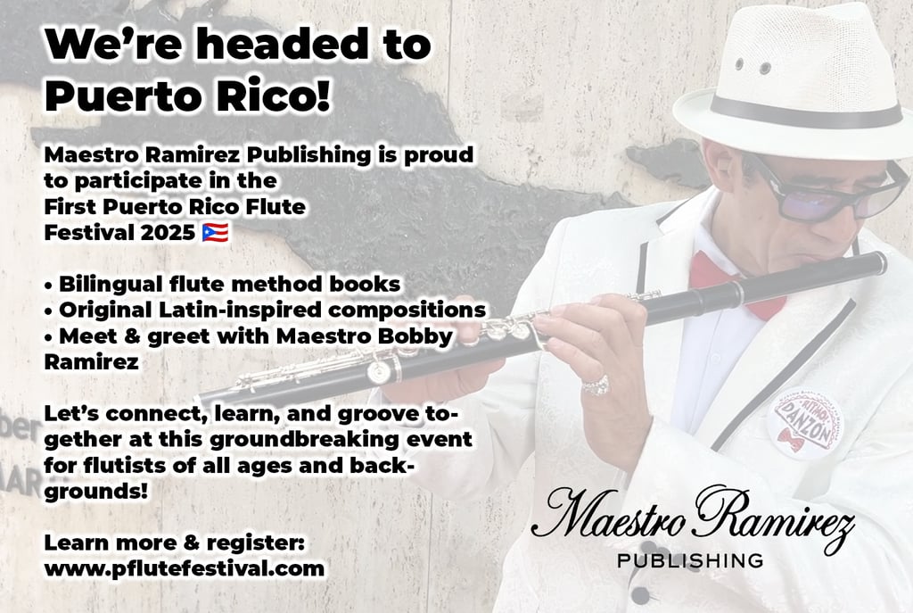 We are thrilled to announce that Maestro Ramirez Publishing will be participating in the First Annual Puerto Rican Flute Festival 2025 — a historic gathering of flutists, educators, and music lovers from around the world! This exciting event will take place in the beautiful island of Puerto Rico, celebrating the rich musical heritage and the power of the flute as a universal voice for culture and expression.